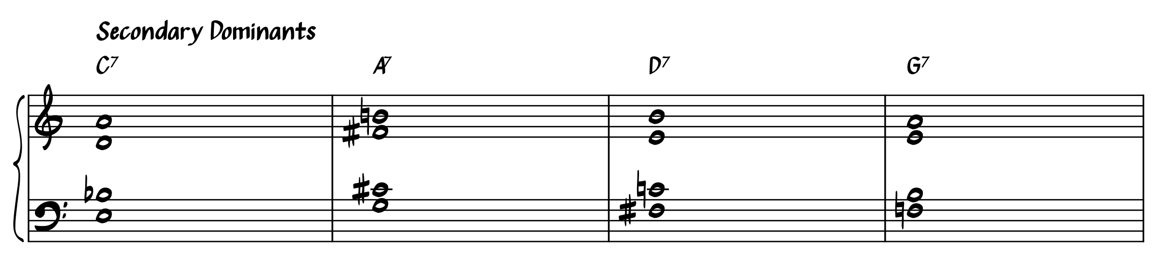 Step 2: Swap any of the minor chords for dominants. This creates a chain of secondary dominants going around the circle of fifths.