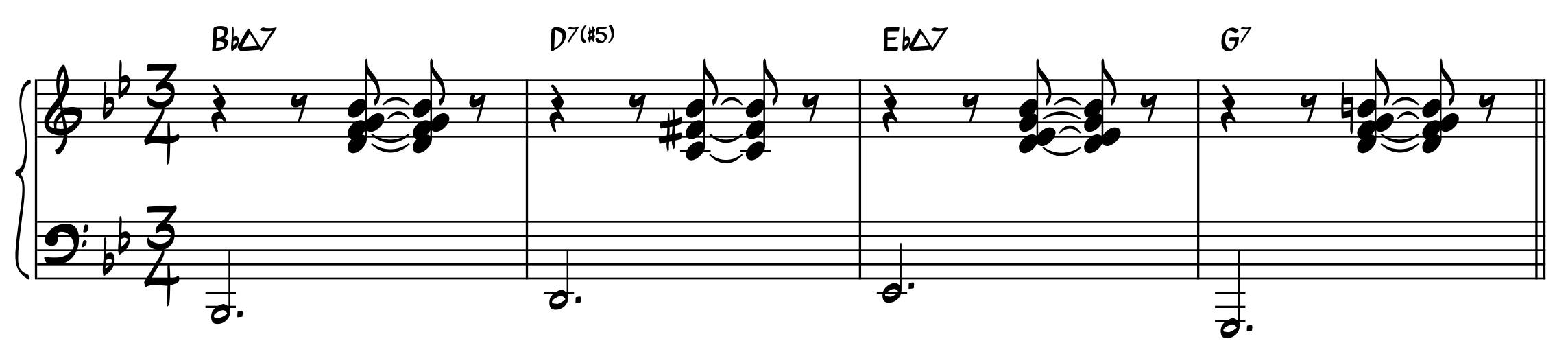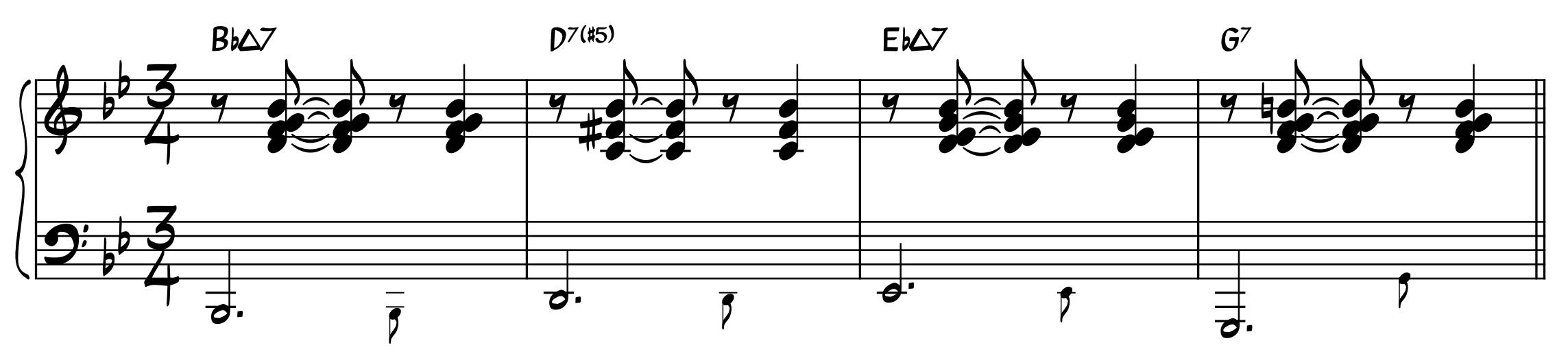 Here’s where jazz waltzes diverge from classical waltzes. In order to swing, we need syncopation.